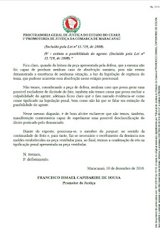 Veja a decisão do MINISTÉRIO PÚBLICO ESTADUAL abaixo, uma a uma: